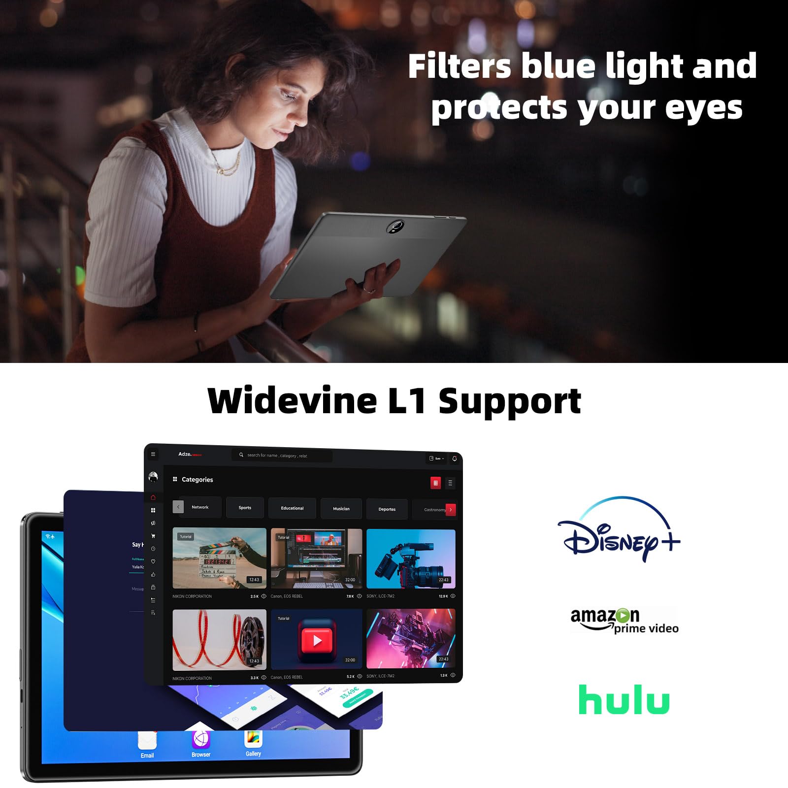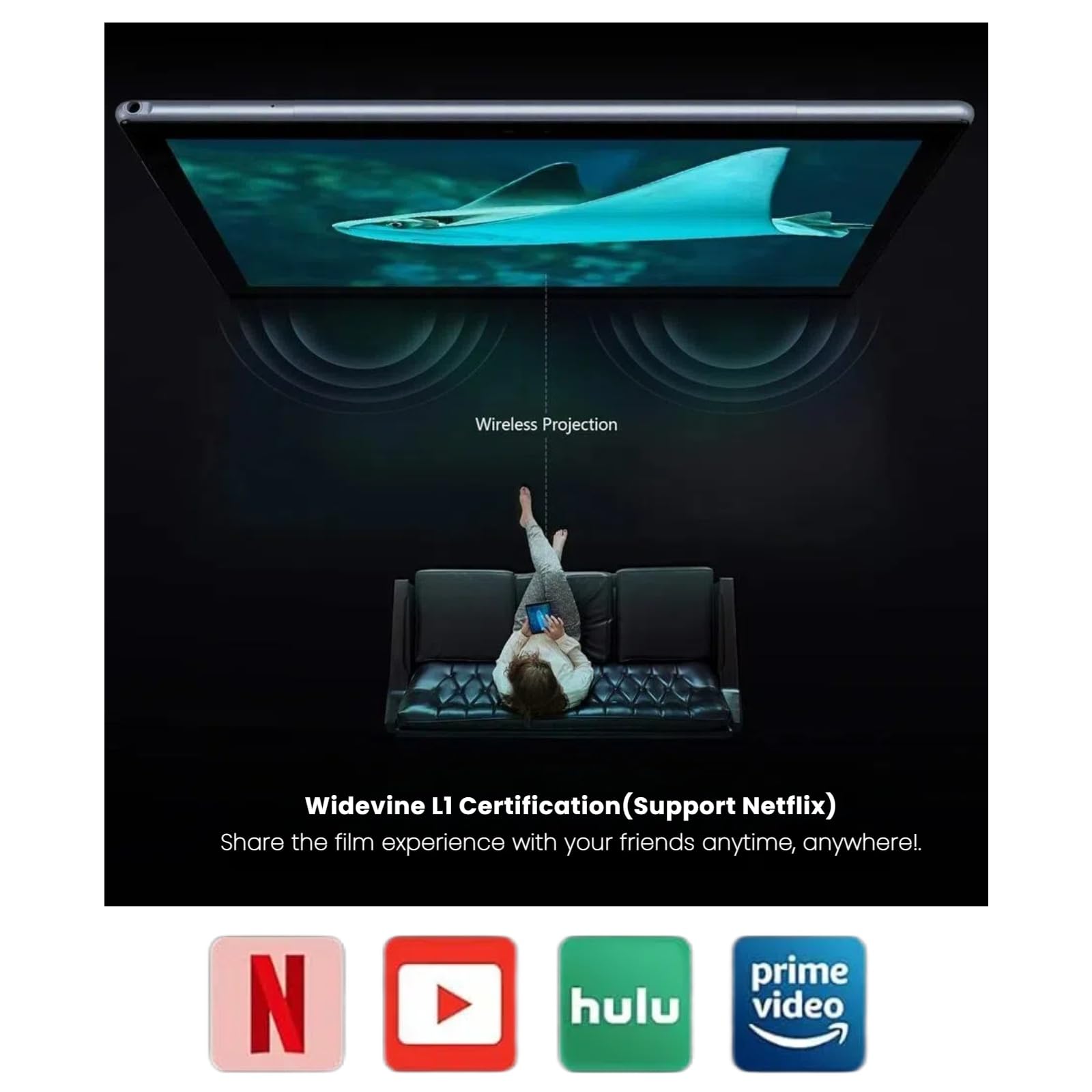- 【12GB RAM+128GB ROM+1TB Expansion】Android 14 tablet is equipped with 12GB RAM+128GB ROM+1TB expansion. With GMS certification, you can download and install any application APP, which can meet your various needs in daily use. Besides, tablet supports Widevine L1 & GPS FM function, which allows you to smoothly watch copyrighted content such as high-quality HD content and streaming services on Prime video, DISNEP, Hulu, etc. It also supports wireless projection and can easily connect to a large TV.