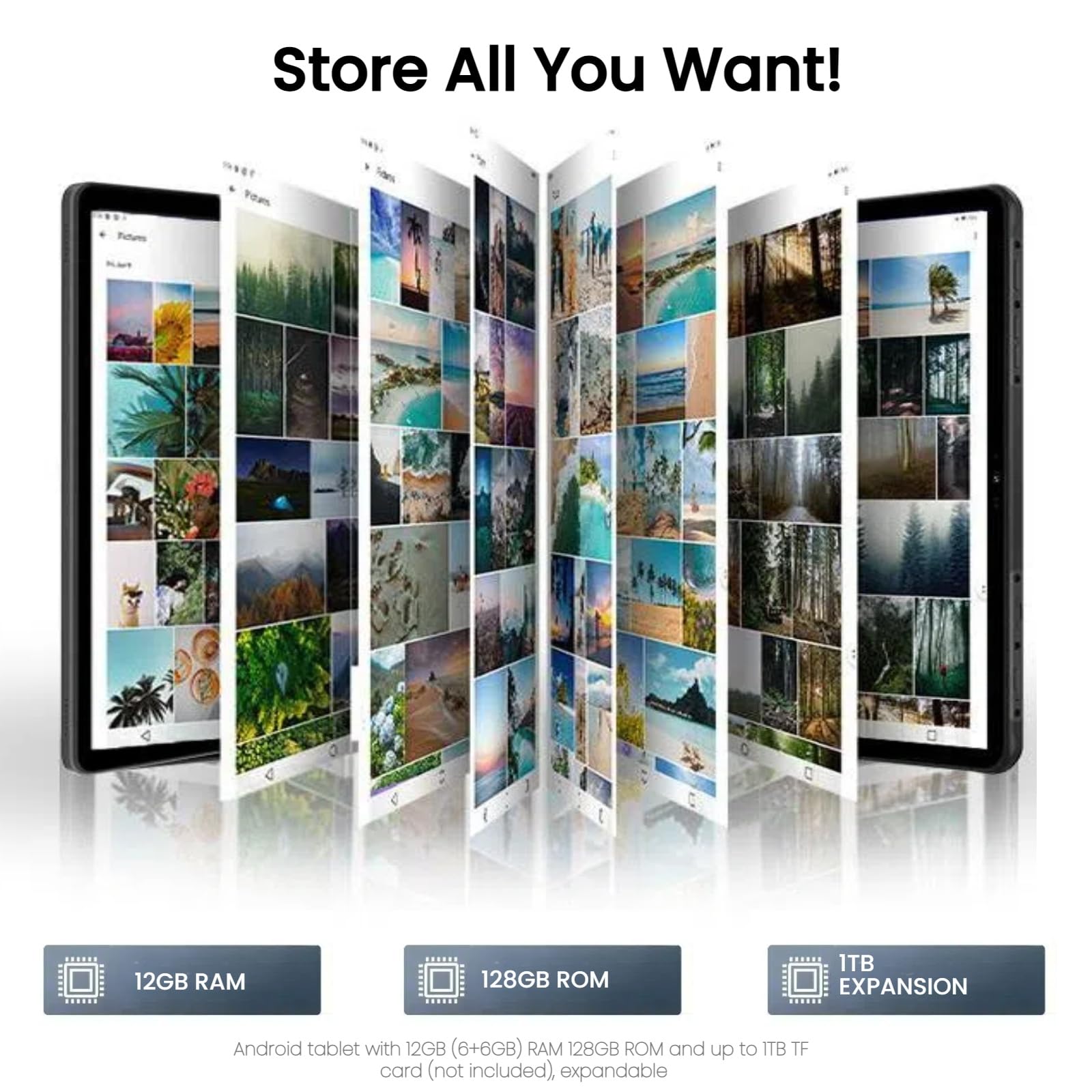 11 Inch Tablet Android 14 Tablets, 2024 New GMS Certified, Octa Core Tablet PC with Keyboard/Mouse/Case12GB RAM 128GB ROM 1TB Expand, 8000mAh, Fast Charging, 5GWiFi, BT5.0, FM, GPS (Black)