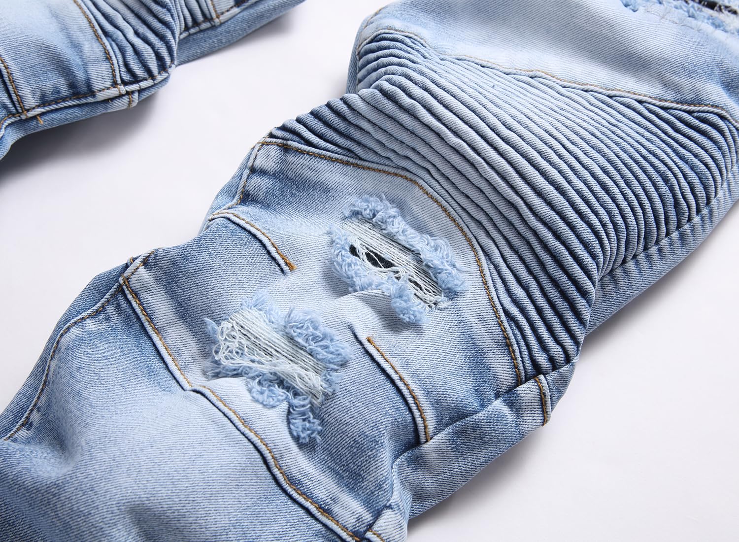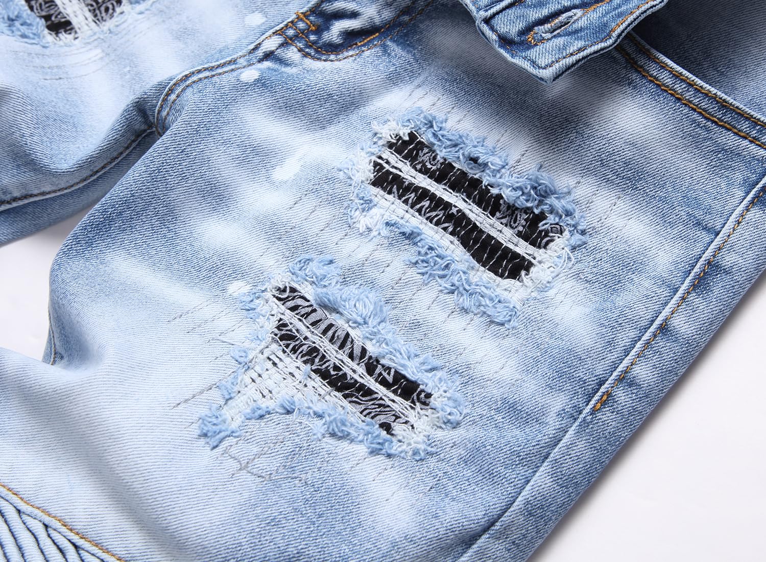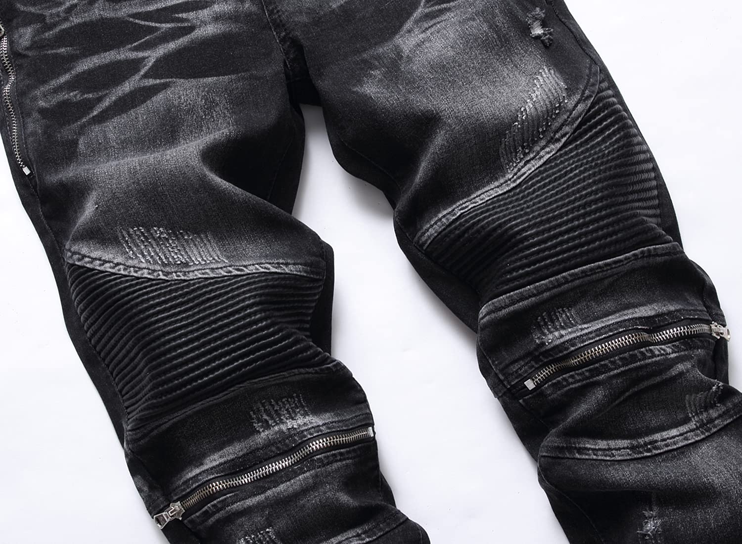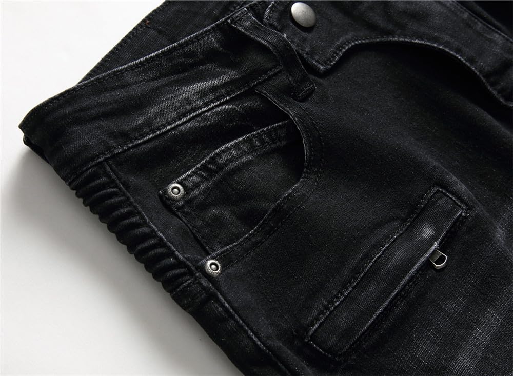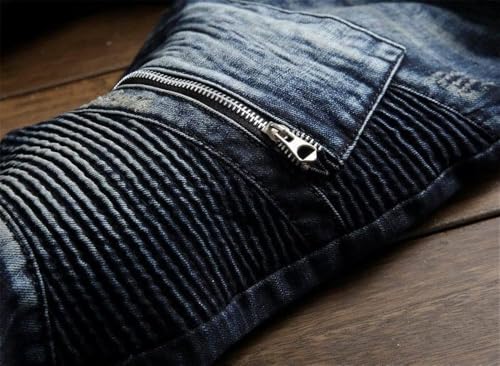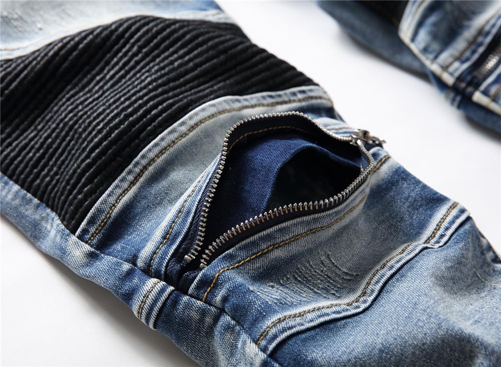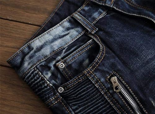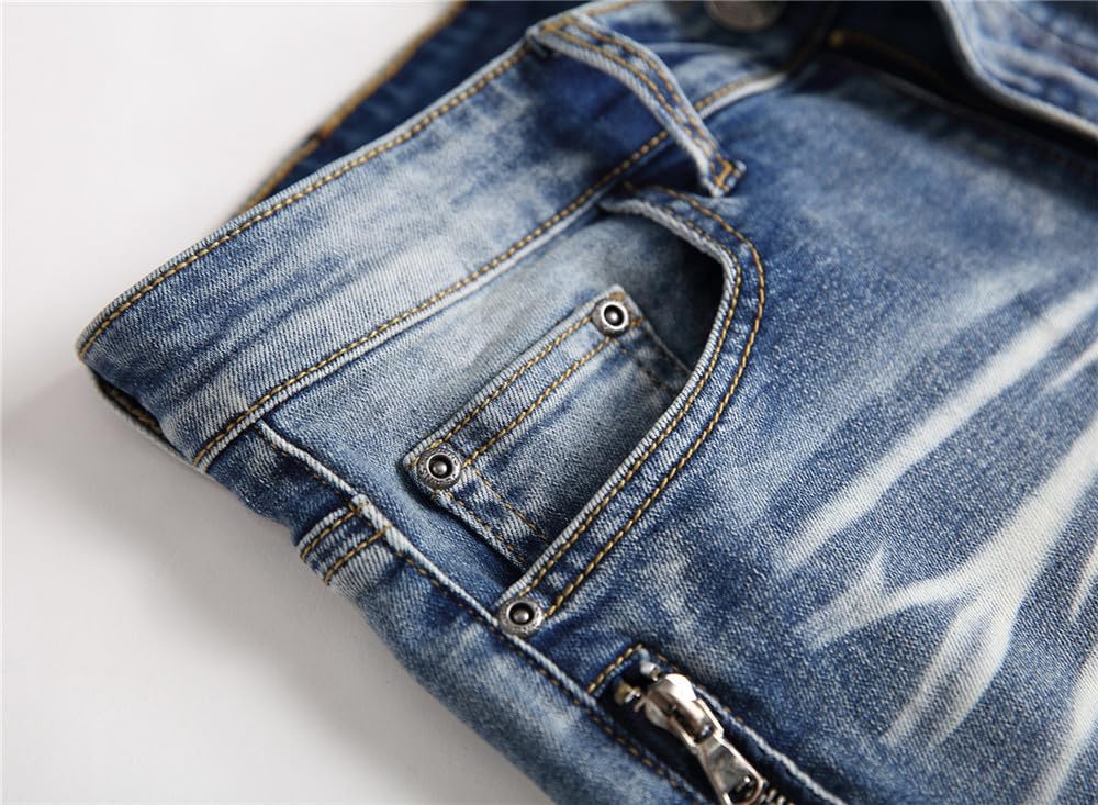 Description BRAND: Our designs are a direct result of overflowing creativity, and a sense of individuality from 21st century young adults. Jeans never die can be called a star throughout the year,as a very special kind of clothing, its main feature is a very long life, and the value of products with increasing life expectancy is constantly increasing, that the more the old jeans, in fact, should be more valuable, but also more handsome. The older the more tasted, is different from the general clothing jeans, a distinctive feature. AITITIA Super Comfy Biker Jeans designed for comfortable-wear. Sweat-absorbent breathable fabric is soft to touch and comfortable for everyday wear. Well-Made Each pair of AITITIA Biker Jeans Jeans uses tough stiches, sturdy buttons and zipper. Easy-to-Match Slim Fit Moto-Style Jeans can be worn casual with flats or boots and a relaxed tee, creating a simple but fashion effect for you. US STANDARD SIZE - Elegant fashion and comfortable experience to wear and offer casual and relaxed mobility without any restrictions like other jeans. Note: 1. The motocross-style ribbing and panels will make you become younger and popular. 2. Smooth and sturdy zipper, brings you a comfortable wearing experience. 3. Five-pockets, most classical and qualified design. 4. AITITIA Men's Ripped Slim Straight fit Biker Jeans With Zipper Deco was made by sophisticated craft and makes each one unique. 5. Tested to retain color after multiple washes. 6. The belt not included