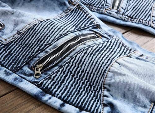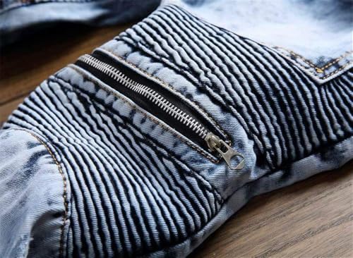 AITITIA Men's Biker Zipper Deco Washed Straight Fit Jeans (40, 002 Light Blue)