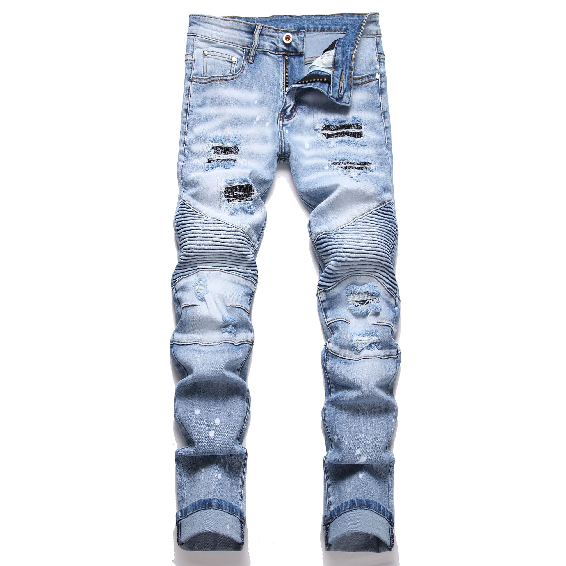 - Easy-to-Match Slim Fit Moto-Style Jeans can be worn casual with flats or boots and a relaxed tee, creating a simple but fashion effect for you