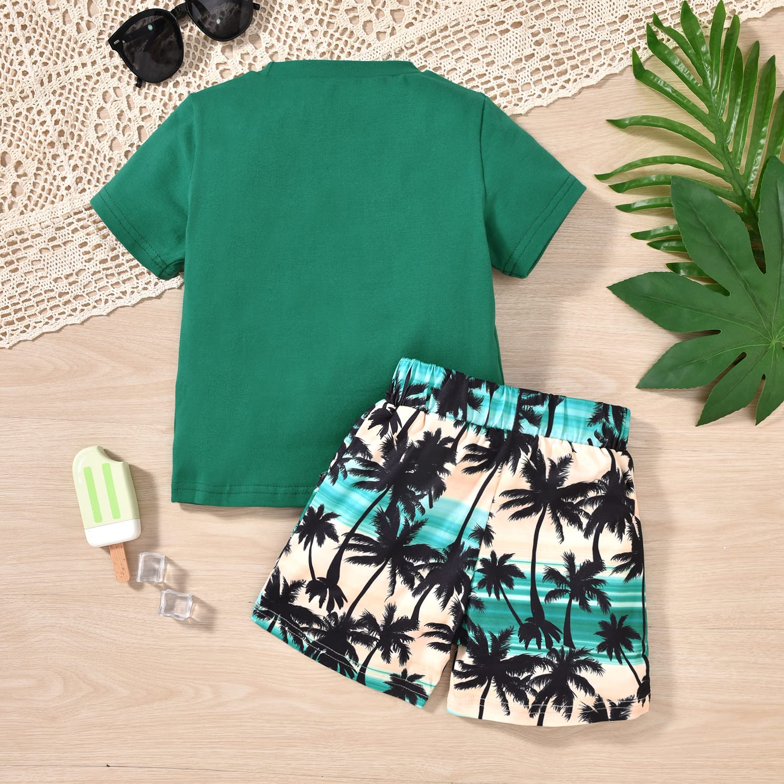 fioukiay 4T Black Toddler Boys Sring Summer Shorts Set Boys Letter Printed Palm Leaf Clothes Outfit
