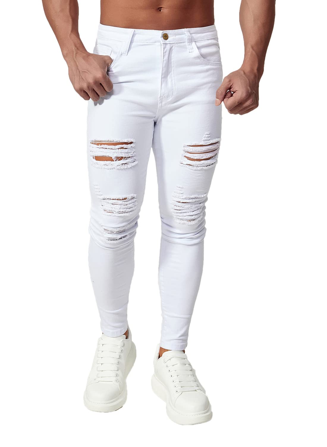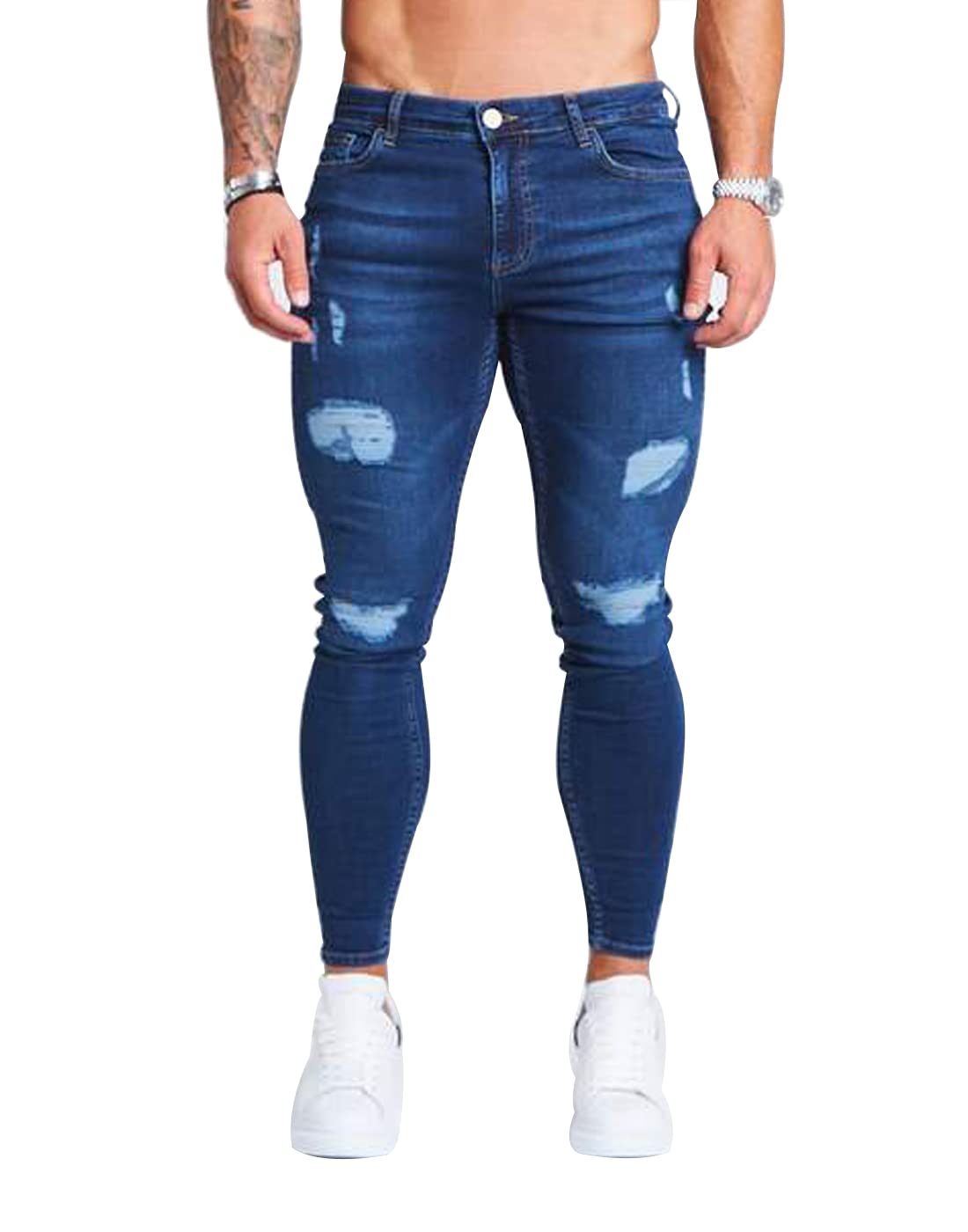 HUNGSON Men's Ripped Skinny Jeans Stretchy Slim Fit Jeans Pants for Men