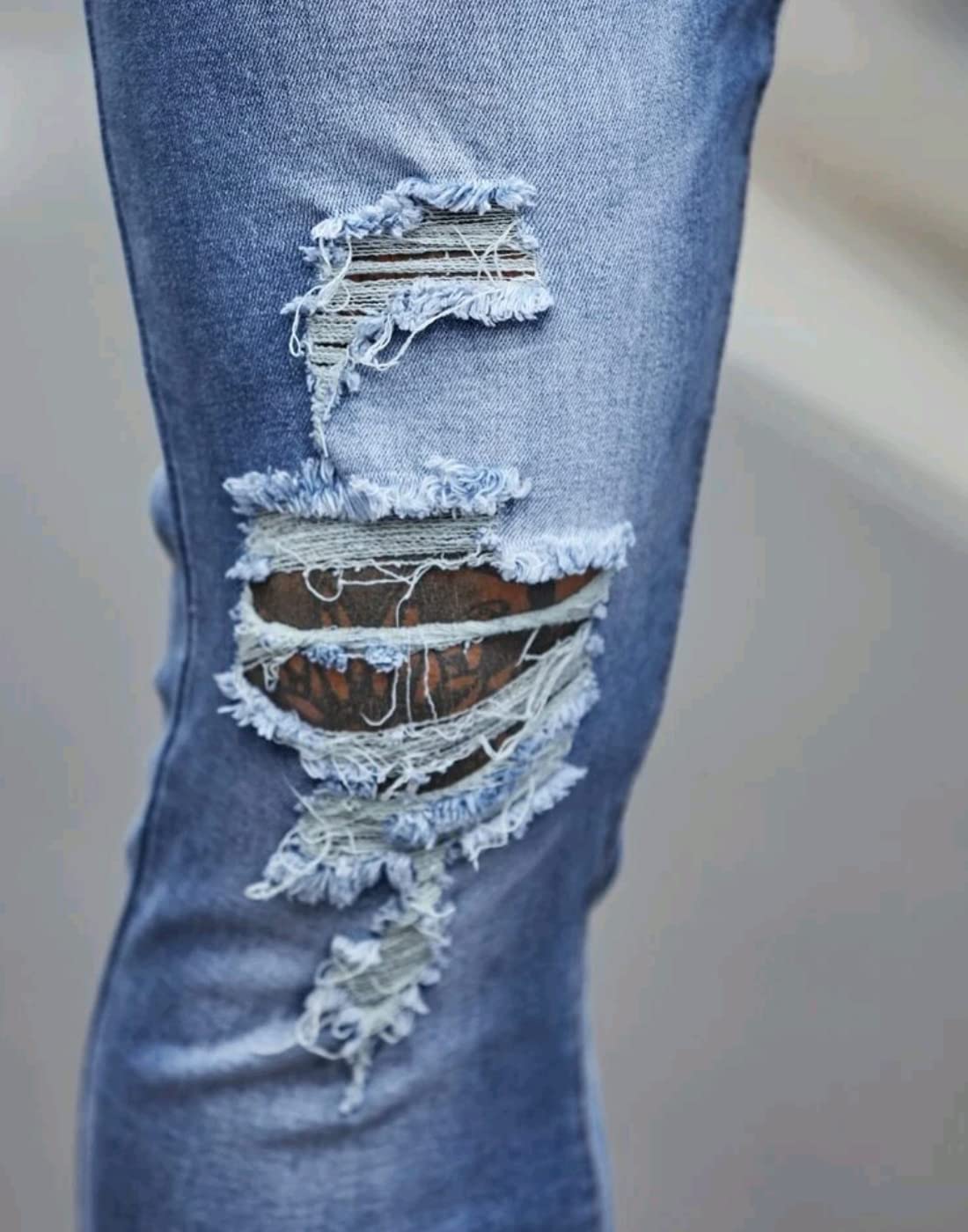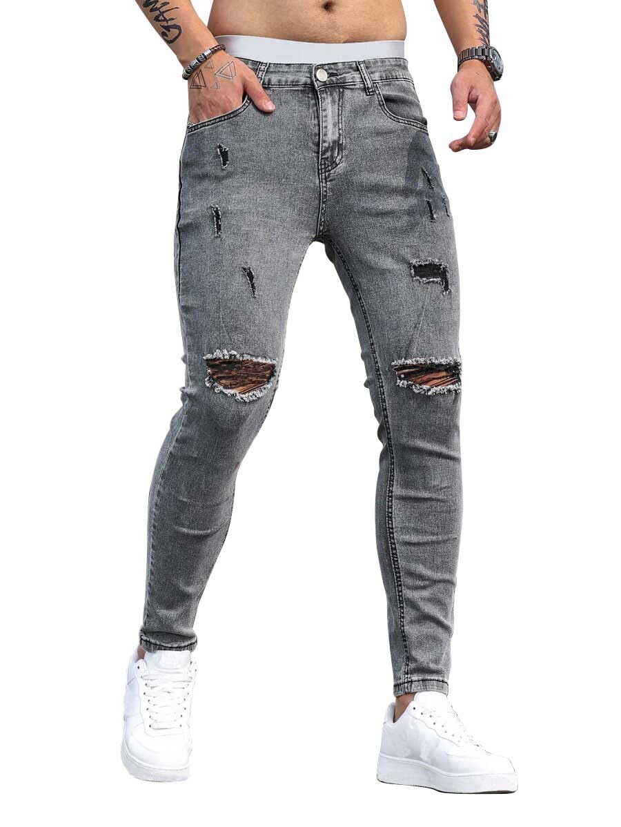 - Men's ripped jeans destroyed denim jeans, with destroyed ripped design on the knee, those jeans show your charming taste and keep you in fashion style.