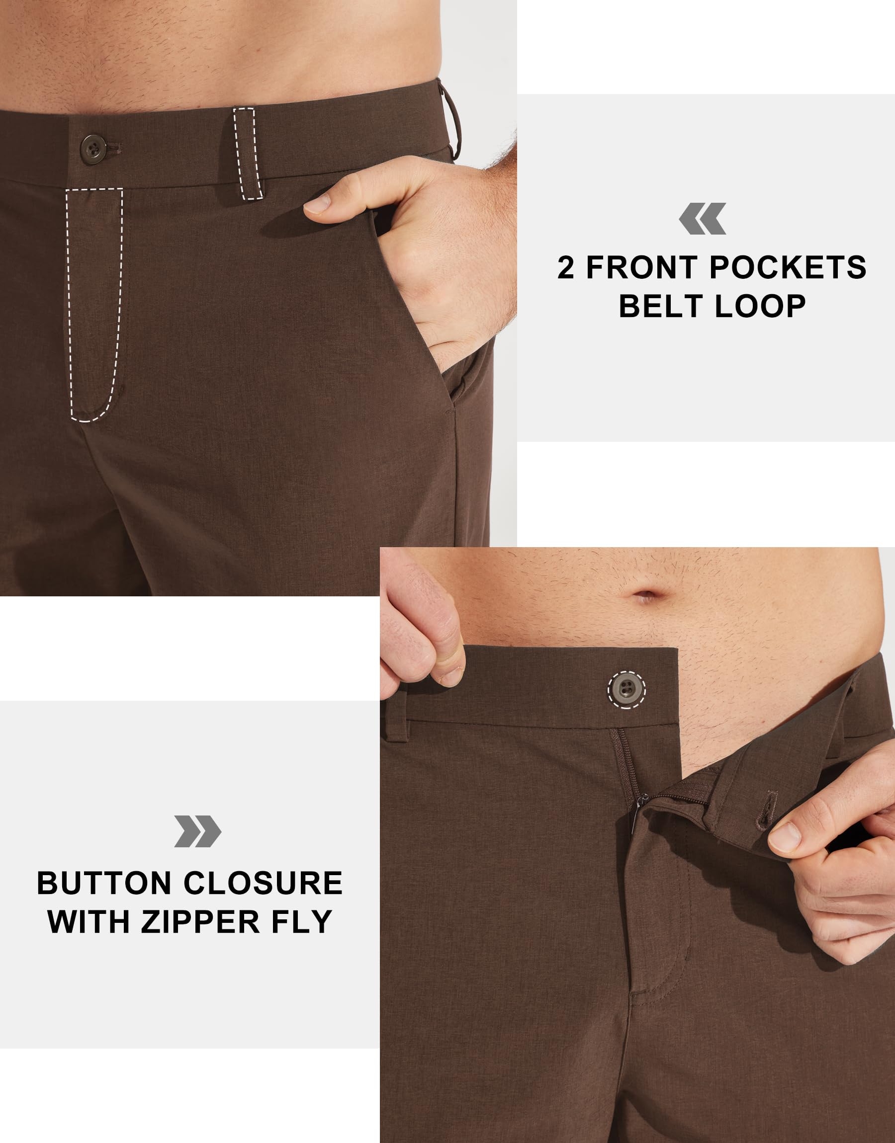 - Detail designs: Belt loops allow these men's dress pants to fit your waistlines, button closure with a zippered fly, 3D-cutting design fits most men's body type, sits at the waist with a straight leg