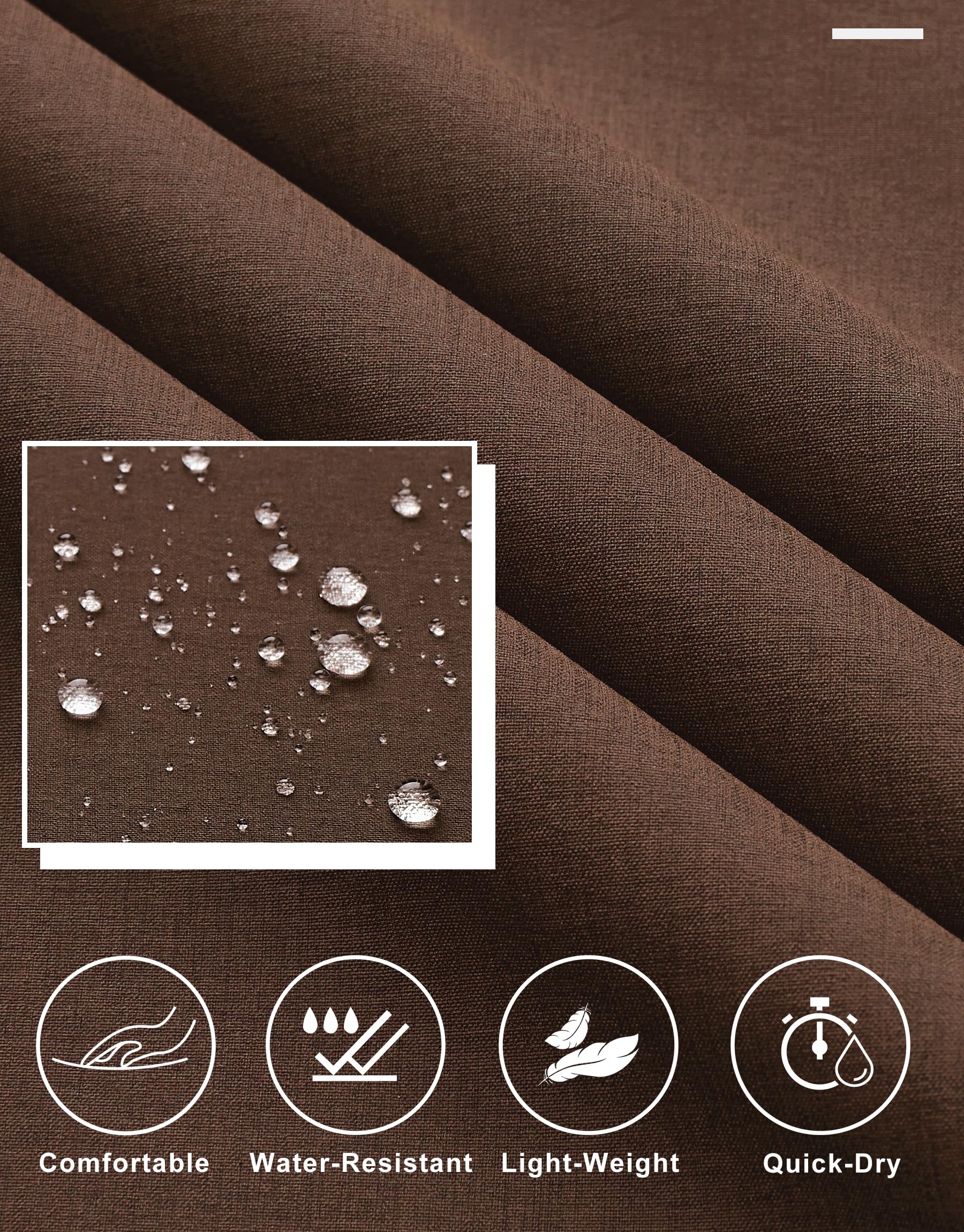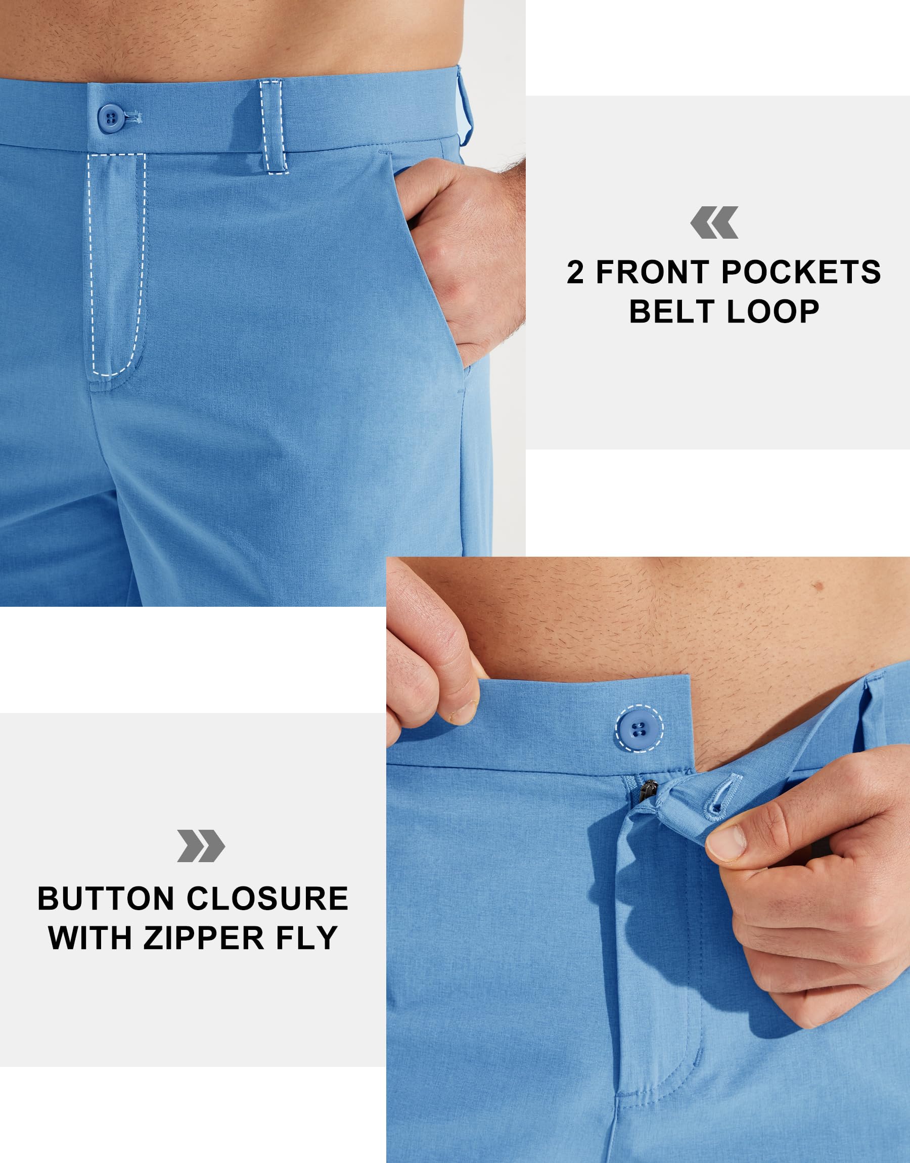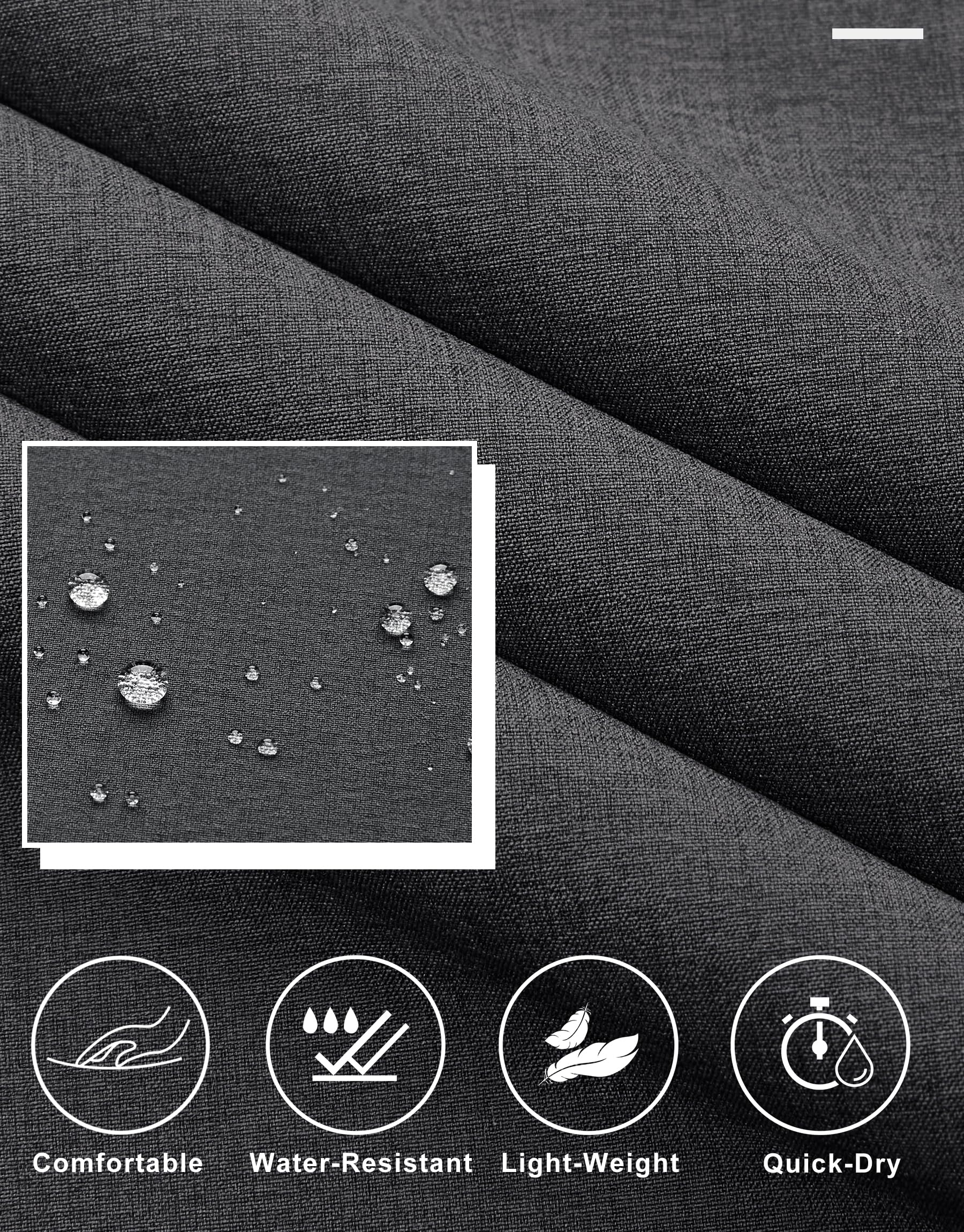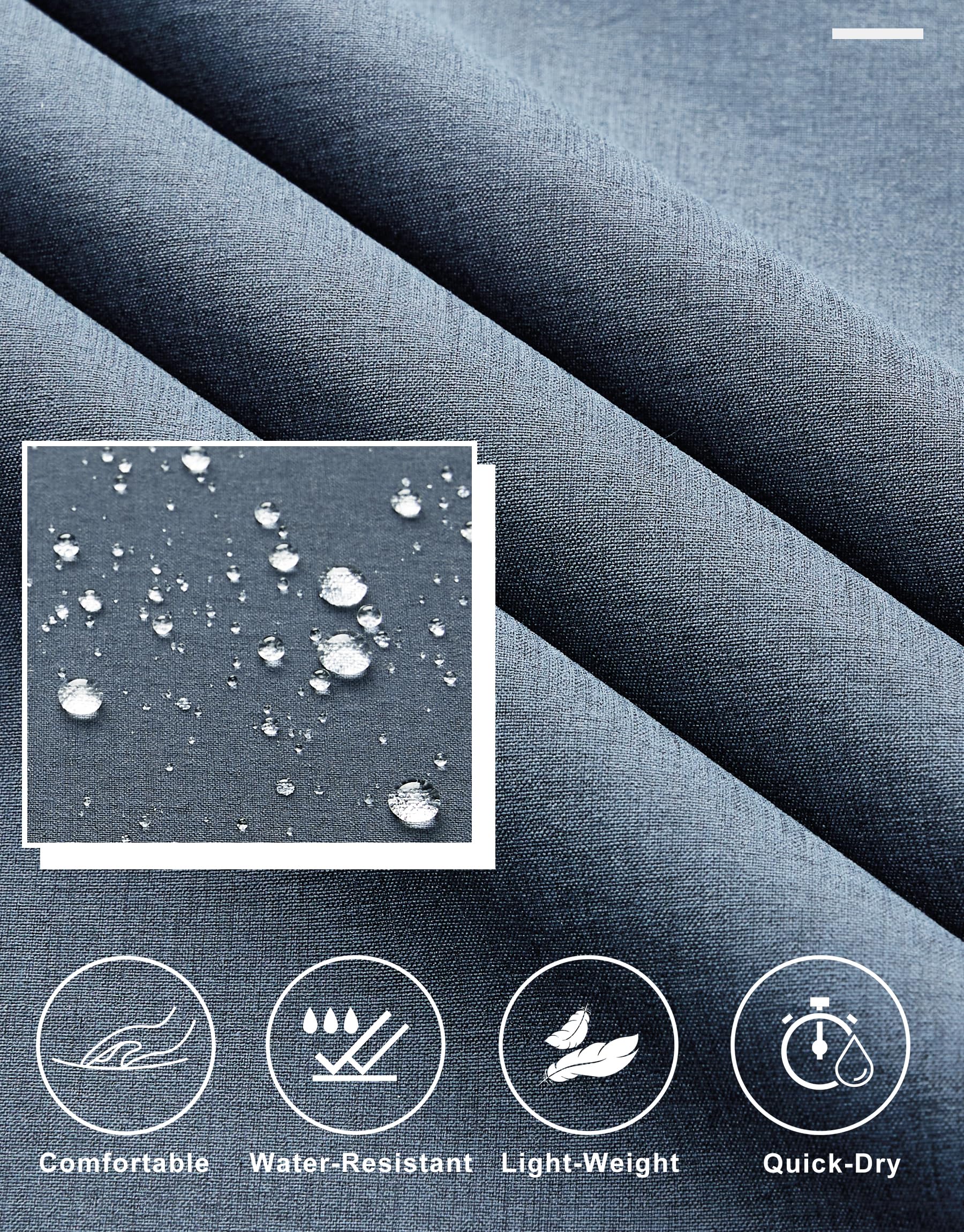 - Comfort Fabric: Lightweight, stretchy, quick dry, moisture-wicking fabric keeps you dry and cool all day, gentle stretch and shape-retention, water-resistant capacity to help resist light rain for a short time. PS: Although the pants may arrive with some creases due to packaging, a simple water wash will eliminate them