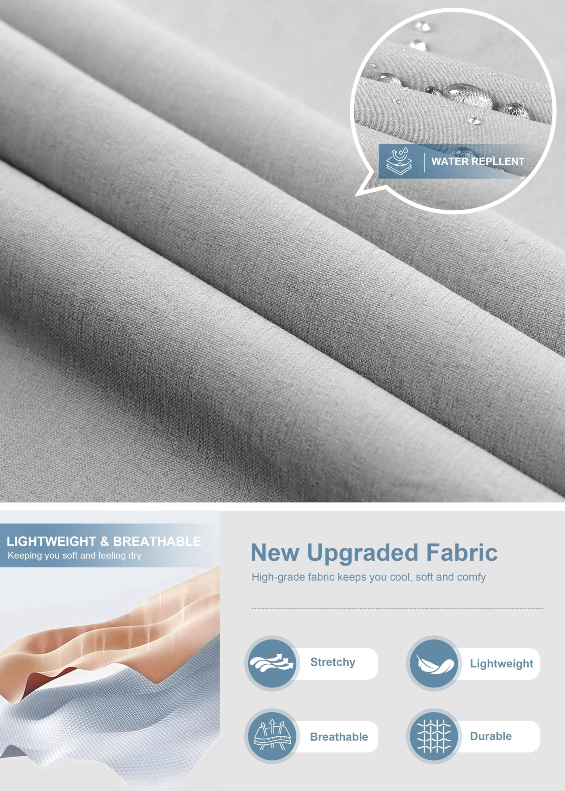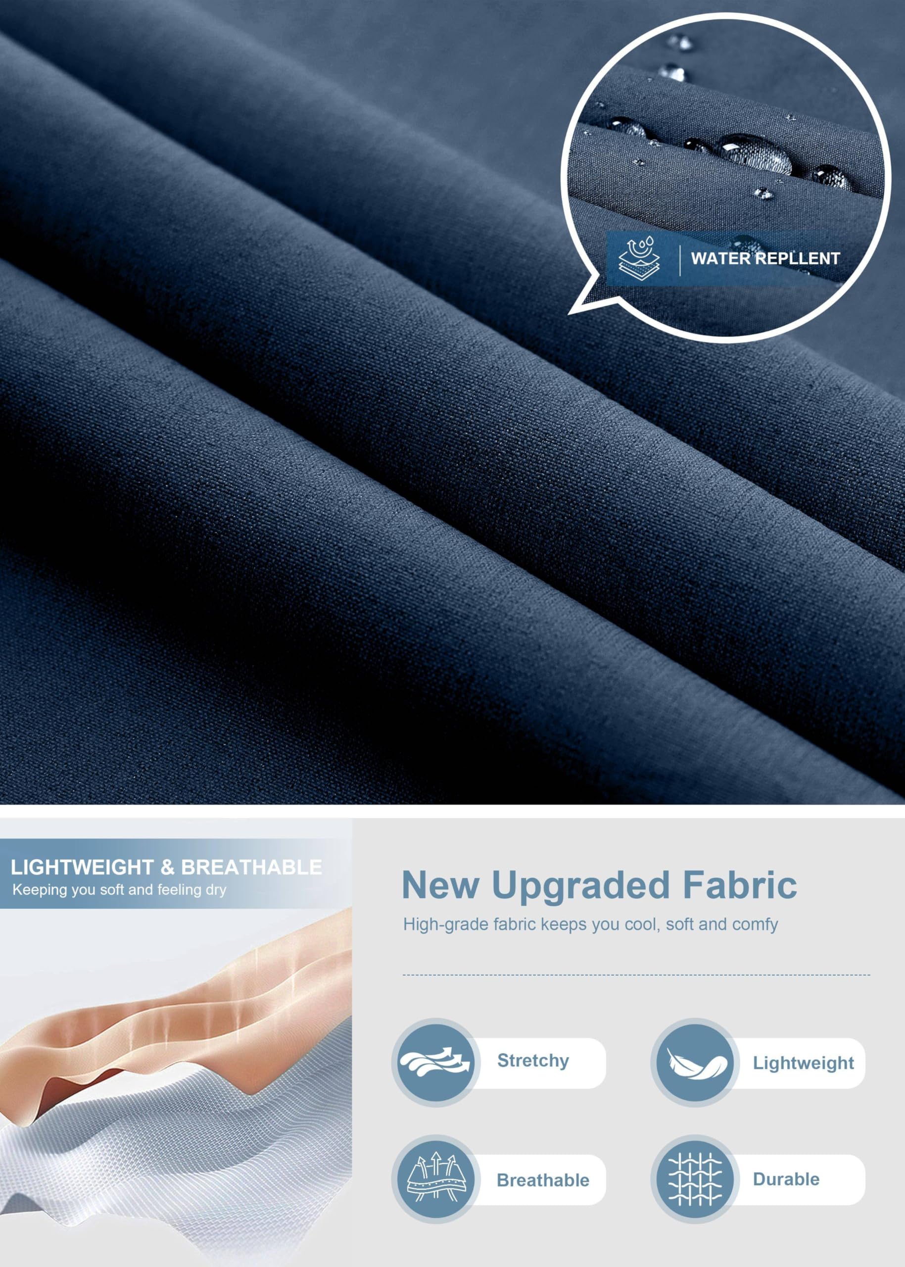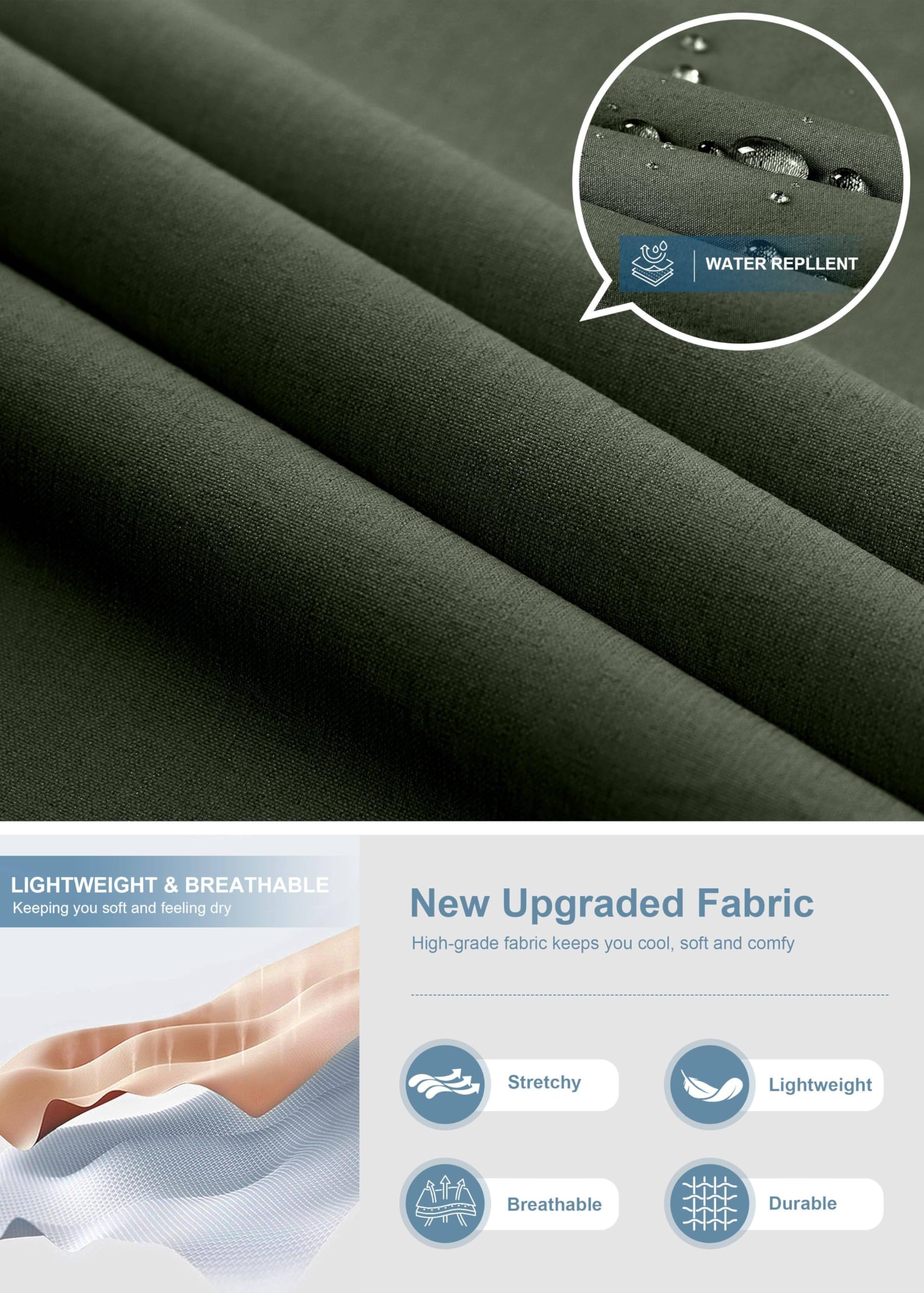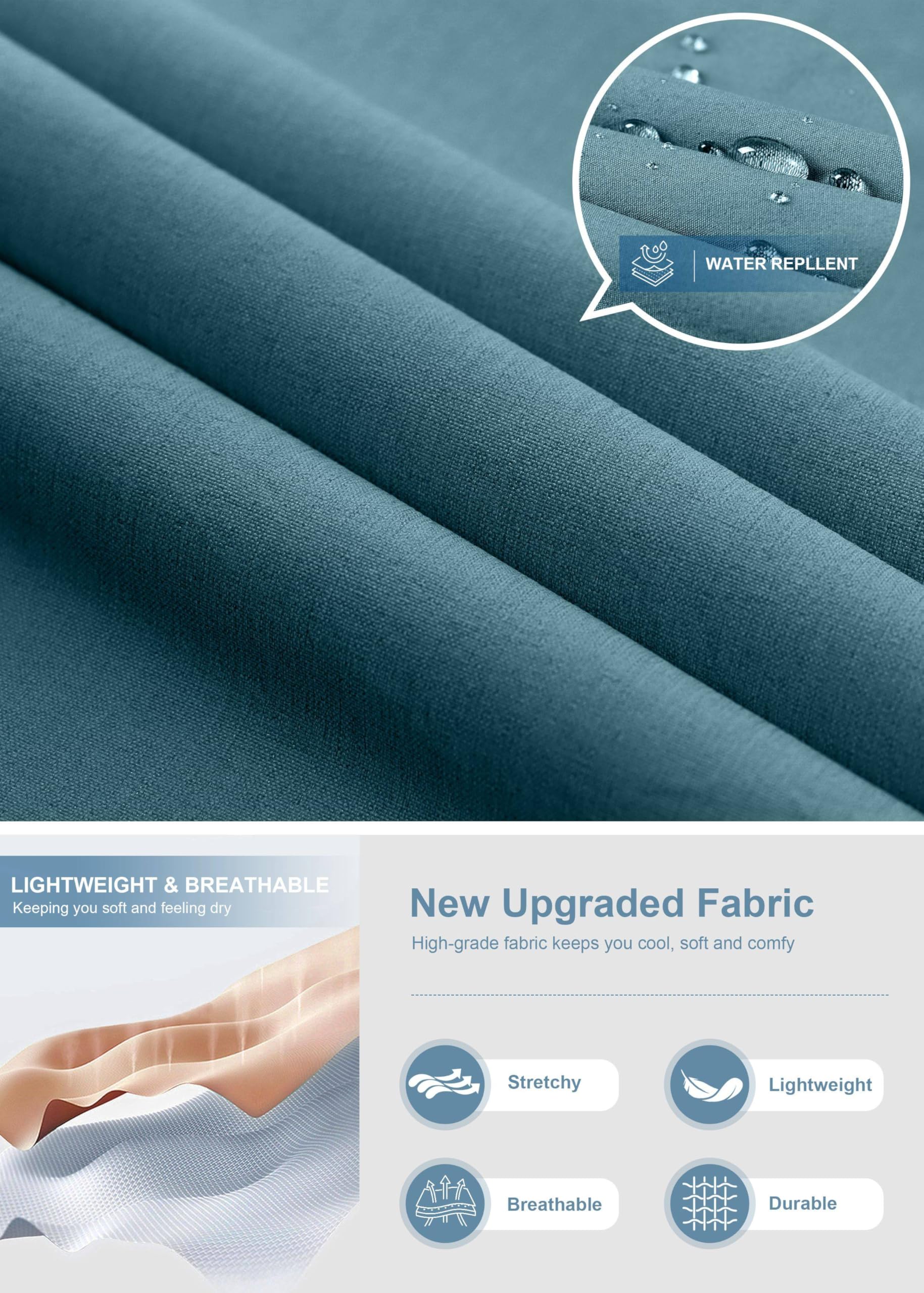 - Comfort Fabric: Lightweight, stretchy, quick dry, moisture-wicking fabric that provides comfort and flexibility, making it perfect for outdoor activities and everyday wear