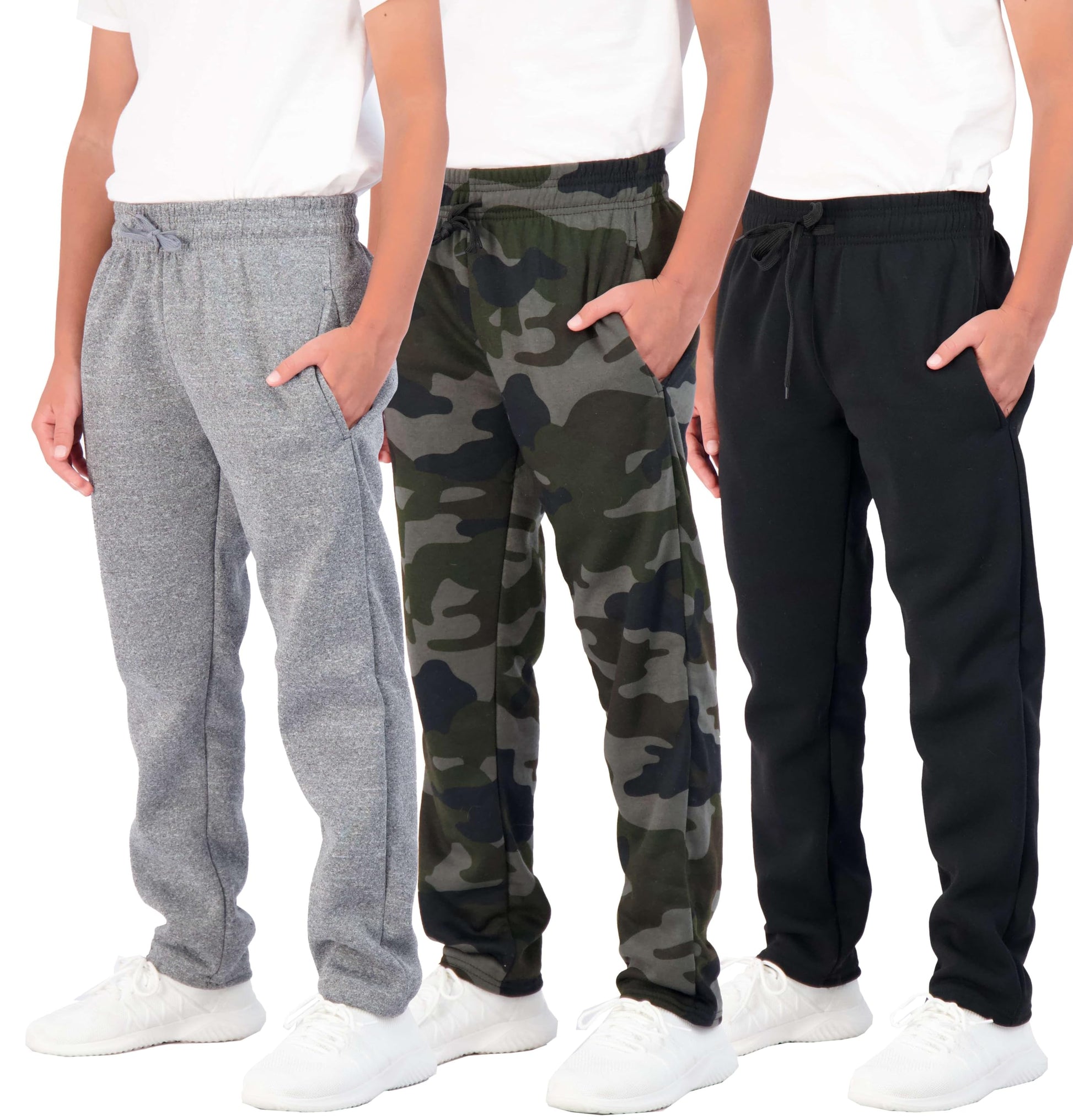Real Essentials 3 Pack: Boys Tech Fleece Jogger Active Sweatpants with Pockets